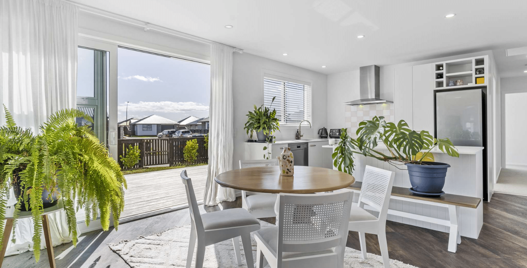 - Open-plan kitchen, dining, and living area with excellent natural light